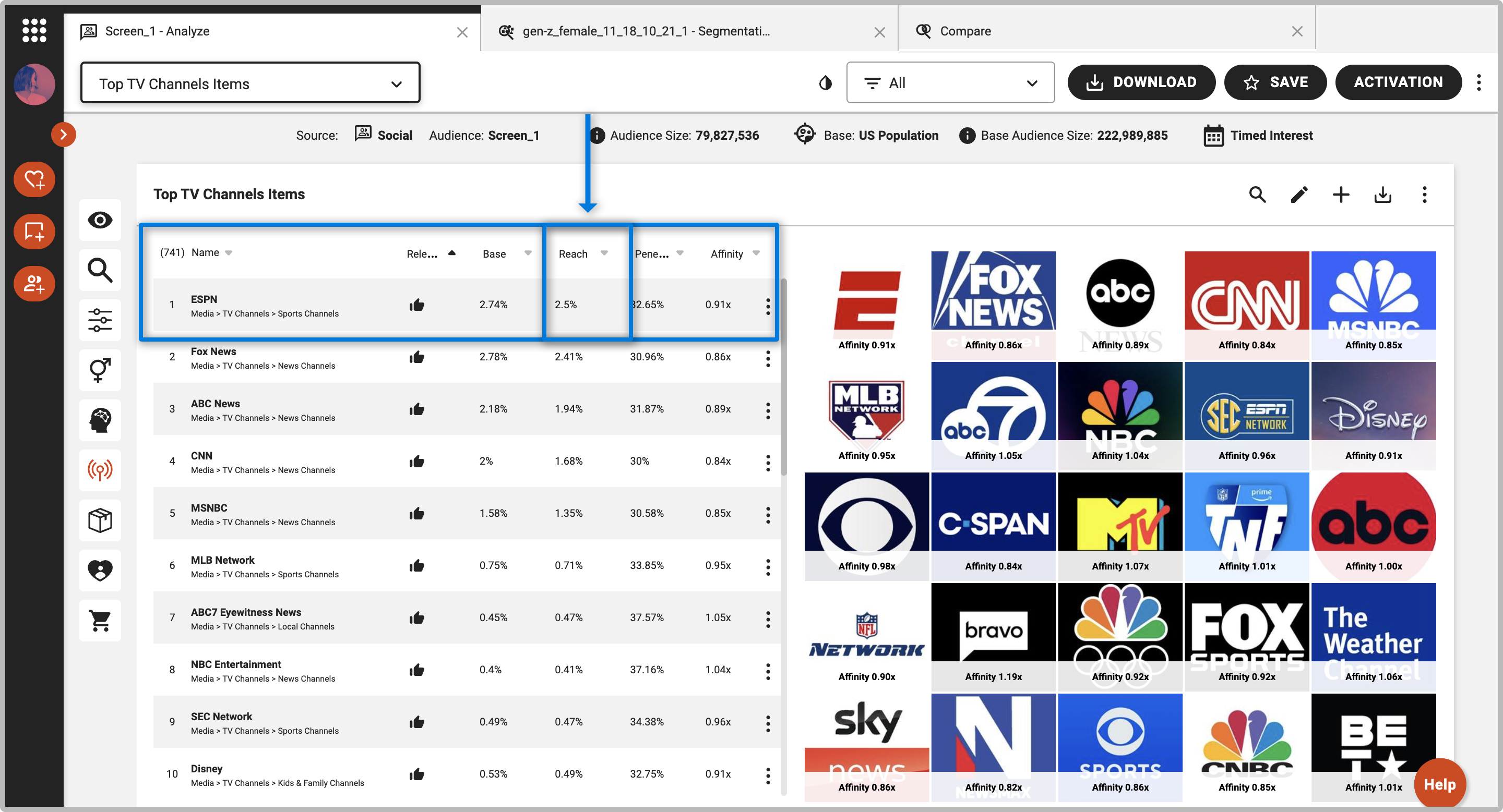 The Reach measurement calculates the percentage of consumers within your target audience who share a specific trait or interest. Reach helps you understand the portion of your audience that is interested.