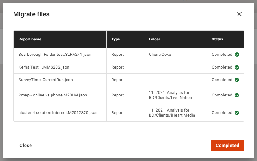 8. Click on completed to exit, and Explore will refresh. You will see the converted PRY files in their respective drives and folders, and the PRX files will now be Custom Audiences, and when you open a relevant report, they will be shown in the Custom Audience section of the codebook.