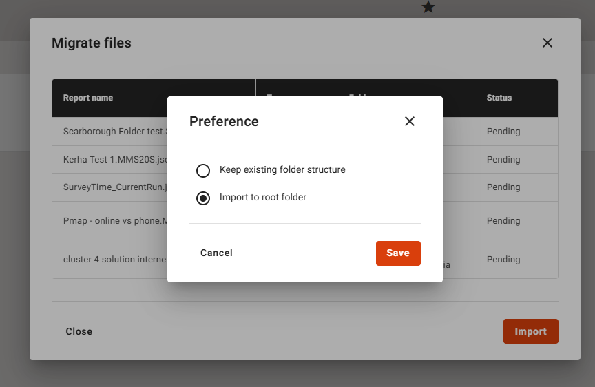 6. Click on “Import” to begin the process. You will have the option to preserve the folder structure or import all files into the root folder of your personal or shared drive