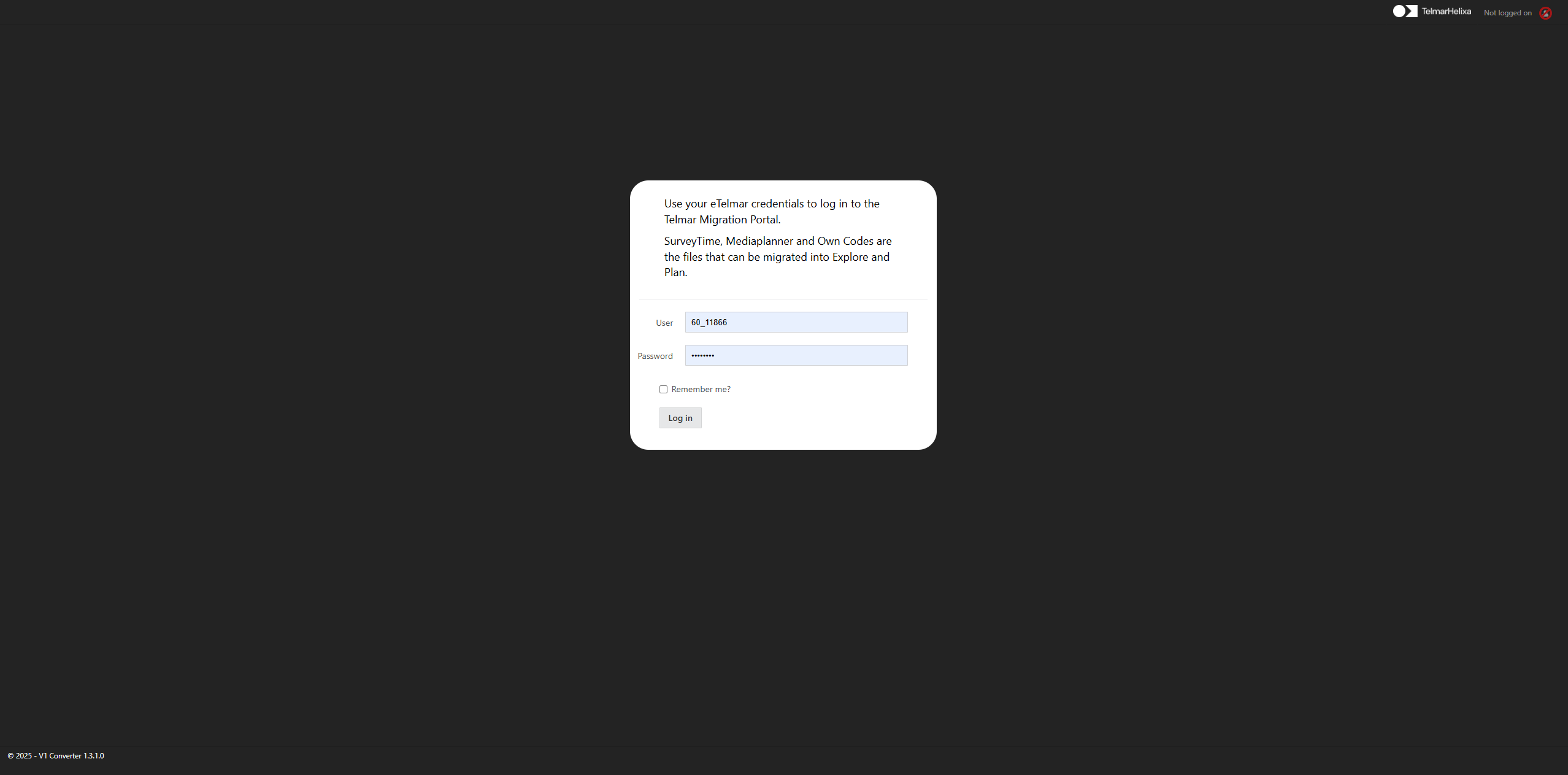 1. Login to the Telmar Converter tool. Depending on your region, use one of the links below: