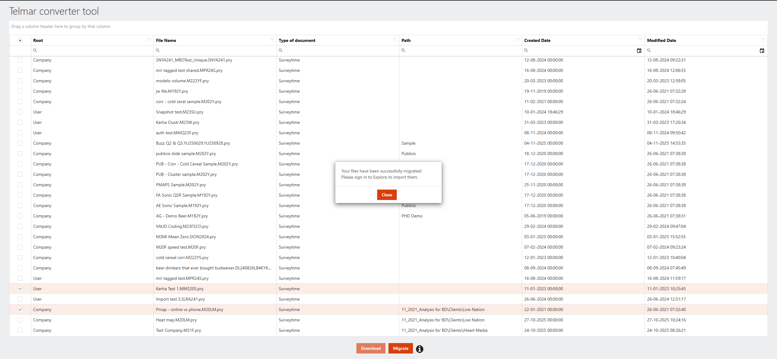 I have completed the process in the Telmar Converter tool but do not see the Migrate button in Explore: The most common reason is that your email addresses are mismatched across both Explore and SurveyTime. Please verify with your Telmar rep that the proper emails are used.