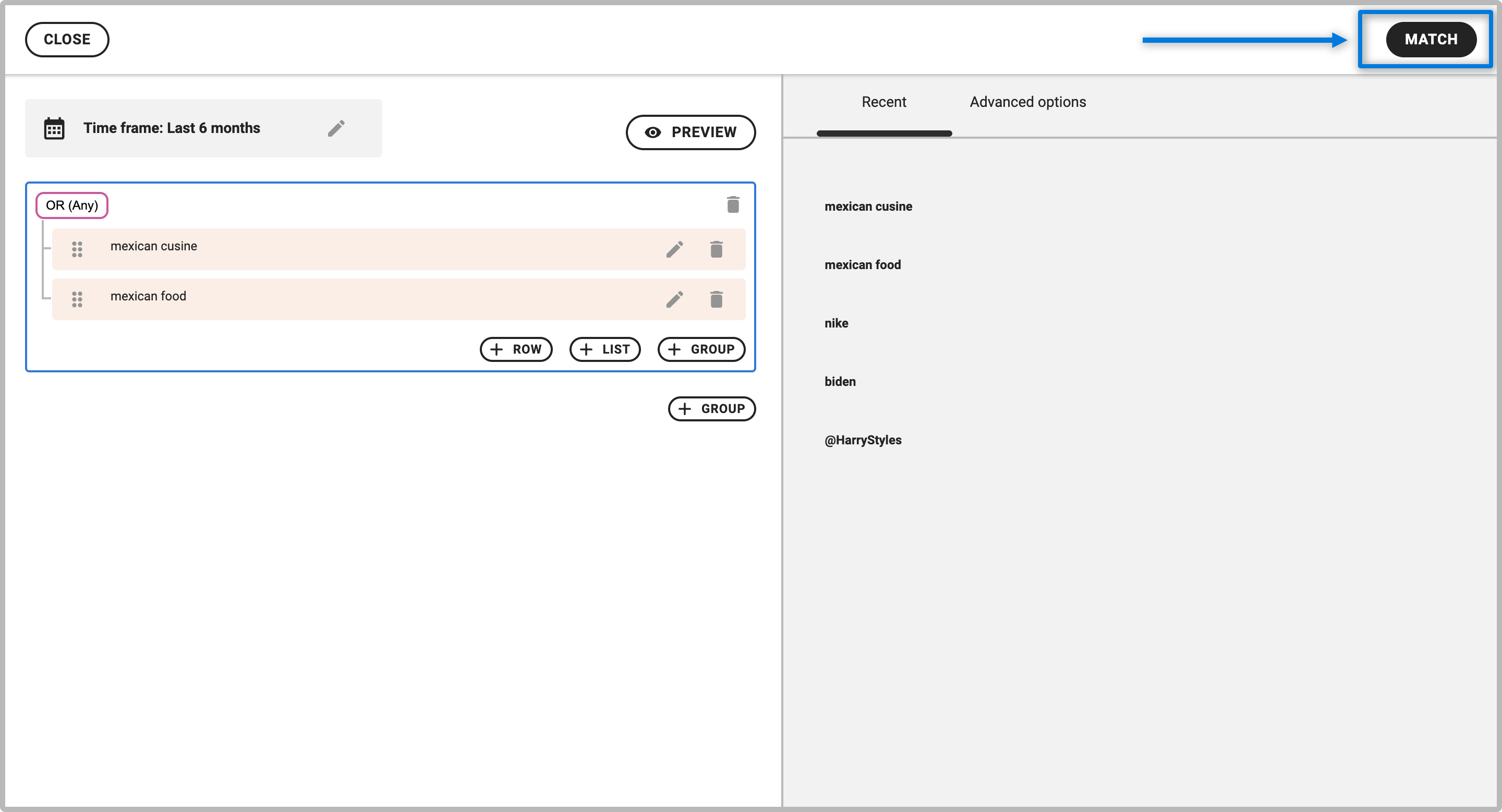 - Select the pink “MATCH” button to begin the audience creation and matching process.