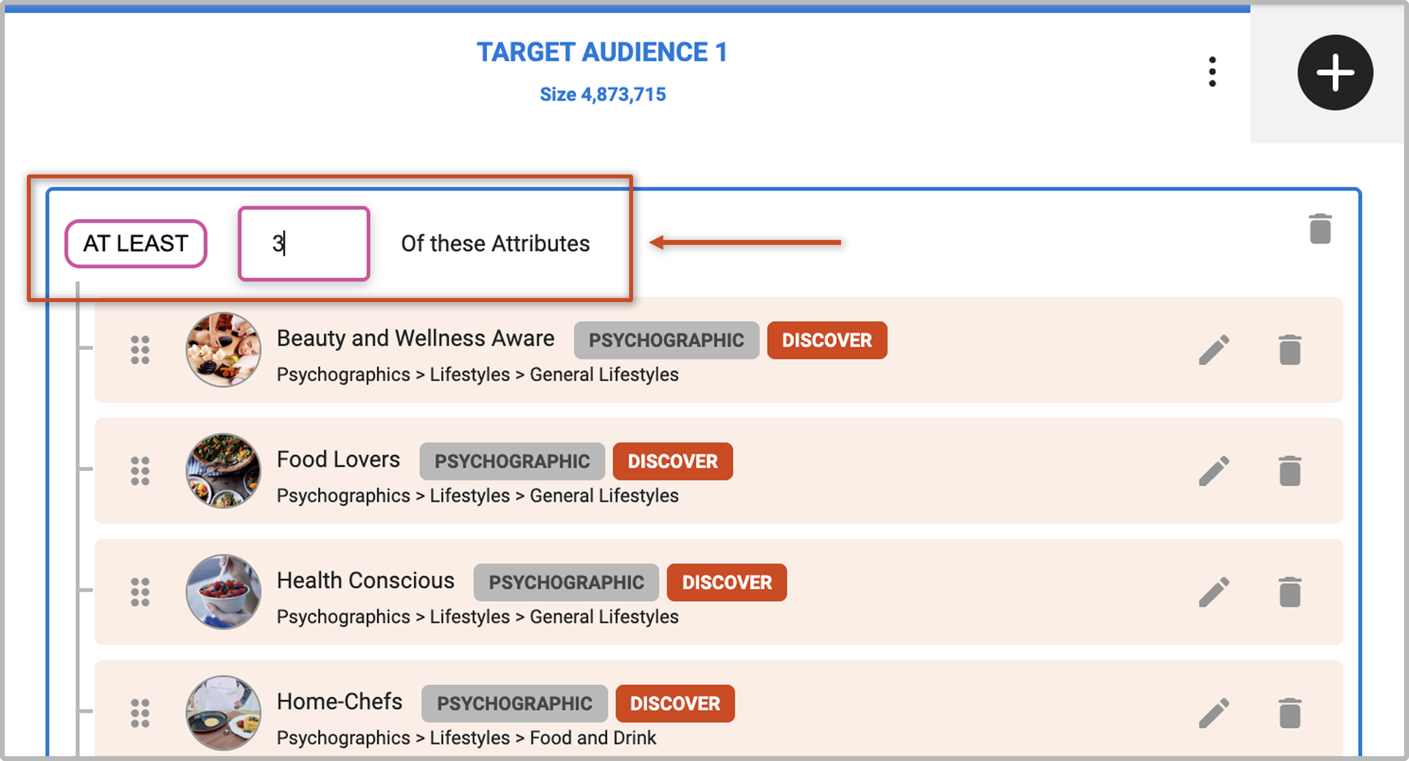 AT LEAST: The audience will include those who match at least the number of items you have specified.