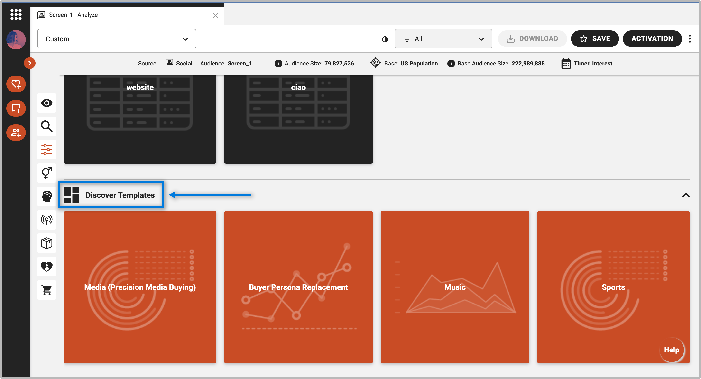 Discover’s Templates are customizable dashboards that provide one-click access to pre-built combinations of tables and charts around popular data use cases and topics. These are particularly helpful for running quick brainstorming sessions, and many Discover clients use them as a starting point to identify interesting areas for more in-depth research. You can customize existing templates, or create your own from scratch based on the data points you use most frequently. You can share these dashboards with other Discover users directly in the tool or export them to share with other colleagues or partners. Templates are a great resource when you have specific data tables and charts that you use frequently. For example, let’s say you are analyzing several auto brand audiences. You can build a car-related custom summary for BMW’s audience, then use the same summary again for Audi, Mercedes, Volvo and so forth.
